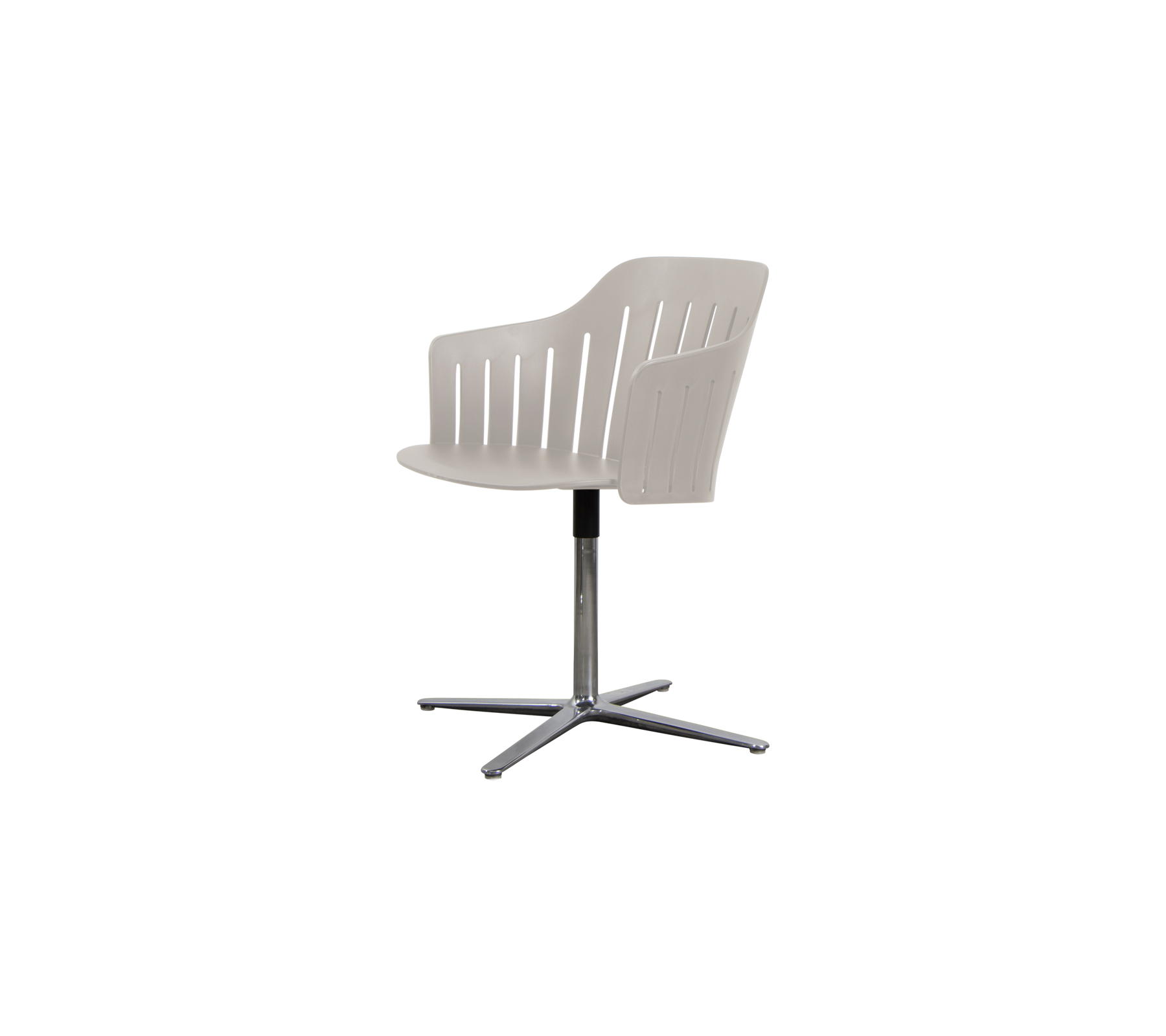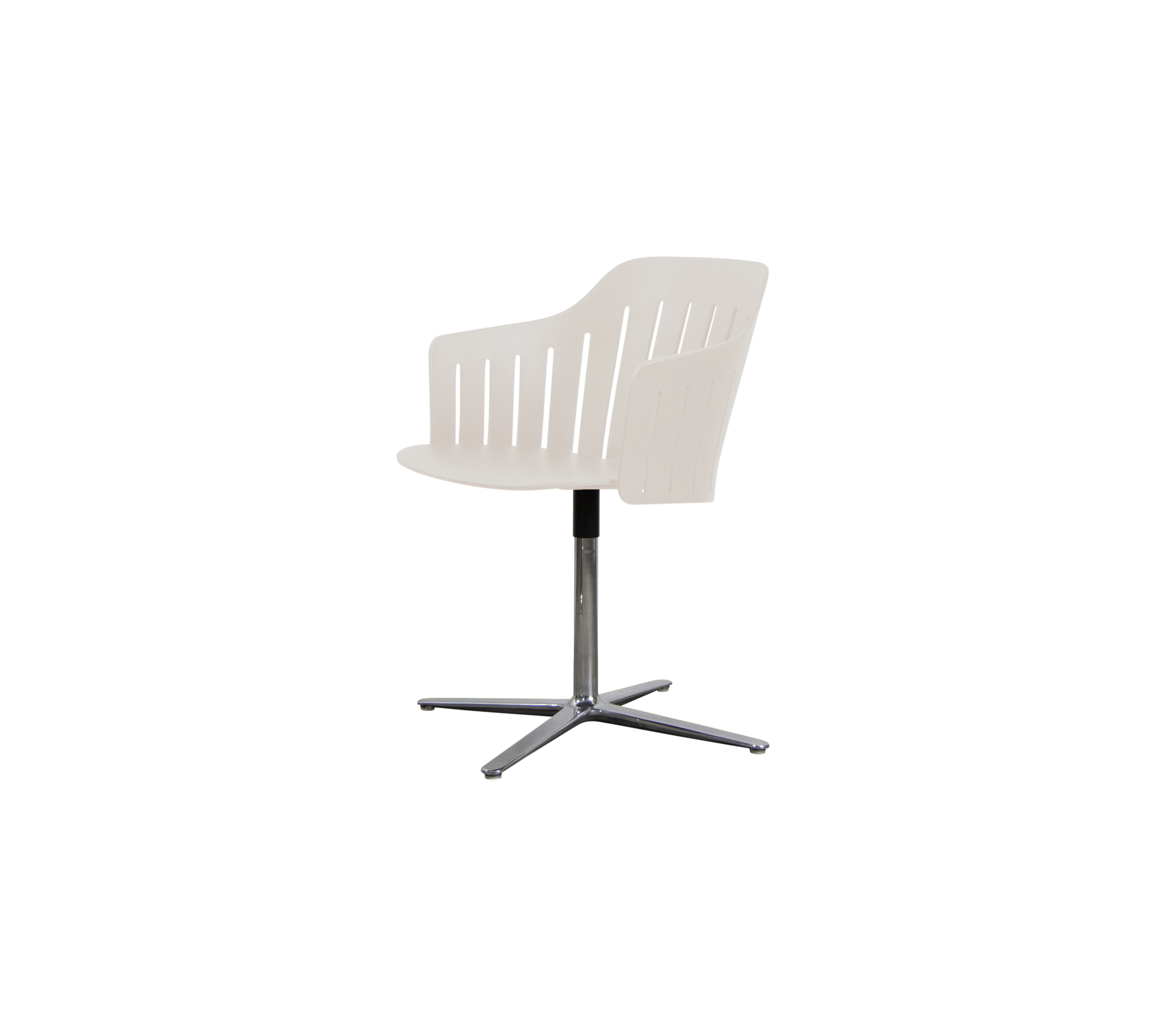 Choice-stolen med drejefod fra Welling/Ludvik er designet til moderne spiseområder, hvor komfort og bevægelsesfrihed er værdsat. Den 360-graders drejefunktion gør det nemt at vende sig mellem samtaler ved spisebordet, madlavning i køkkenet og aktivitet omkring bordet. Den formstøbte sædeskal er fremstillet af op til 98% genanvendt polypropylen og giver støttende komfort med en let fleksibel ryg, mens de åbne riller giver et luftigt design og et lettere visuelt udtryk.